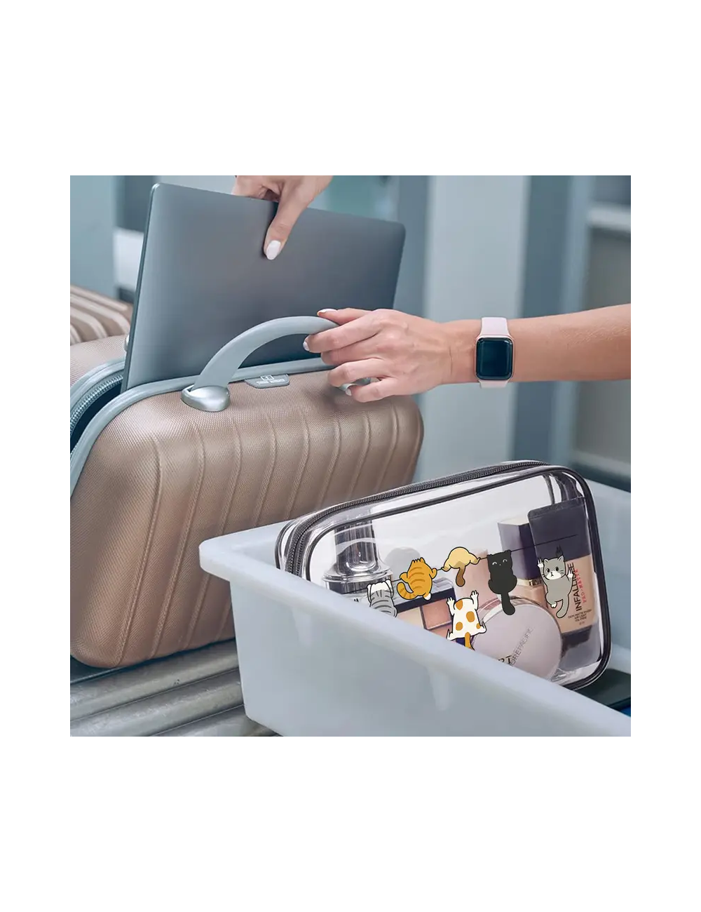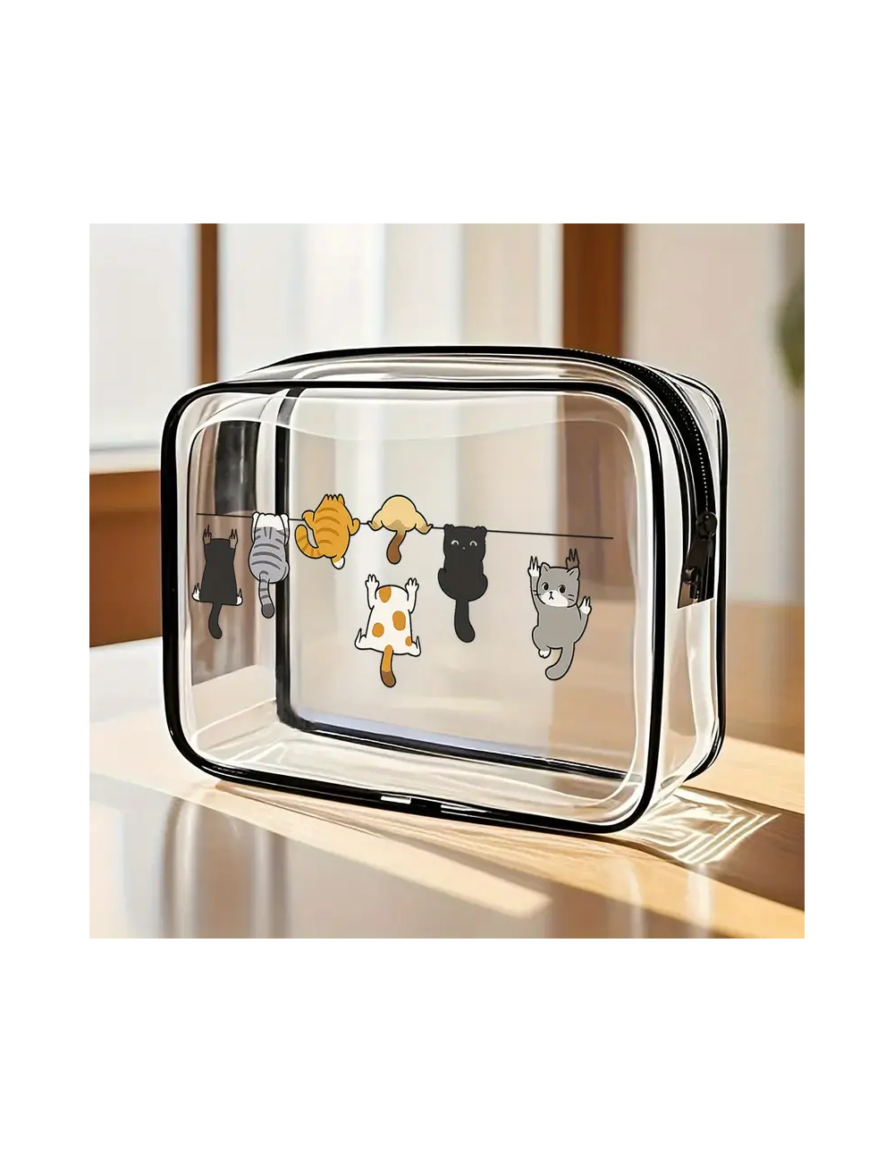 • 여행용 메이크업 보관 가방, 지퍼 잠금, 대용량, 세탁 쉬운 스타일리시 고품질 여성용 수납백, 소형 PVC 파우치, 휴대용 화장품 가방, 다이내믹 고양이 디자인