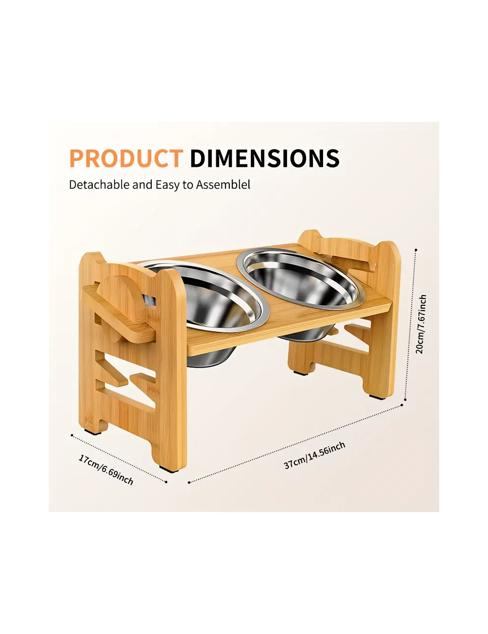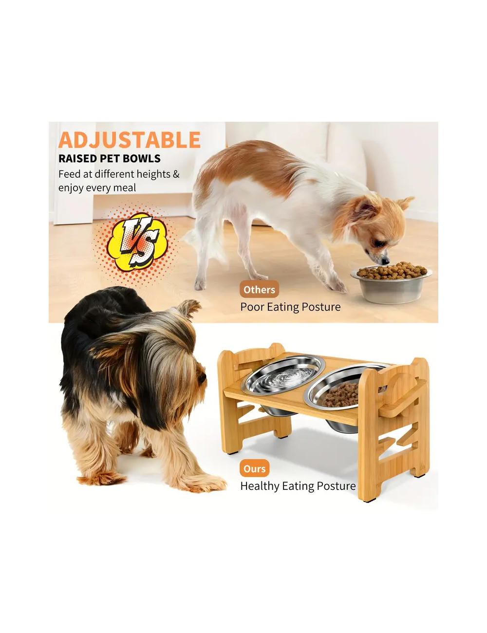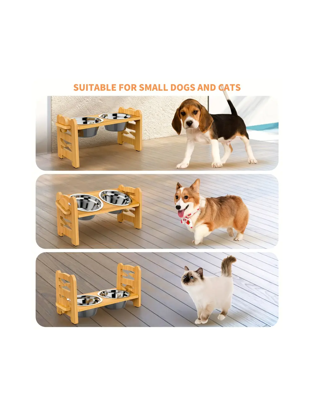 높이 조절 가능한 목 보호용 스테인리스 스틸 그릇 2개 포함 목재 강아지 사료대 > 반려동물용품
